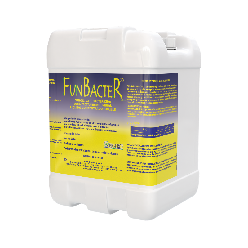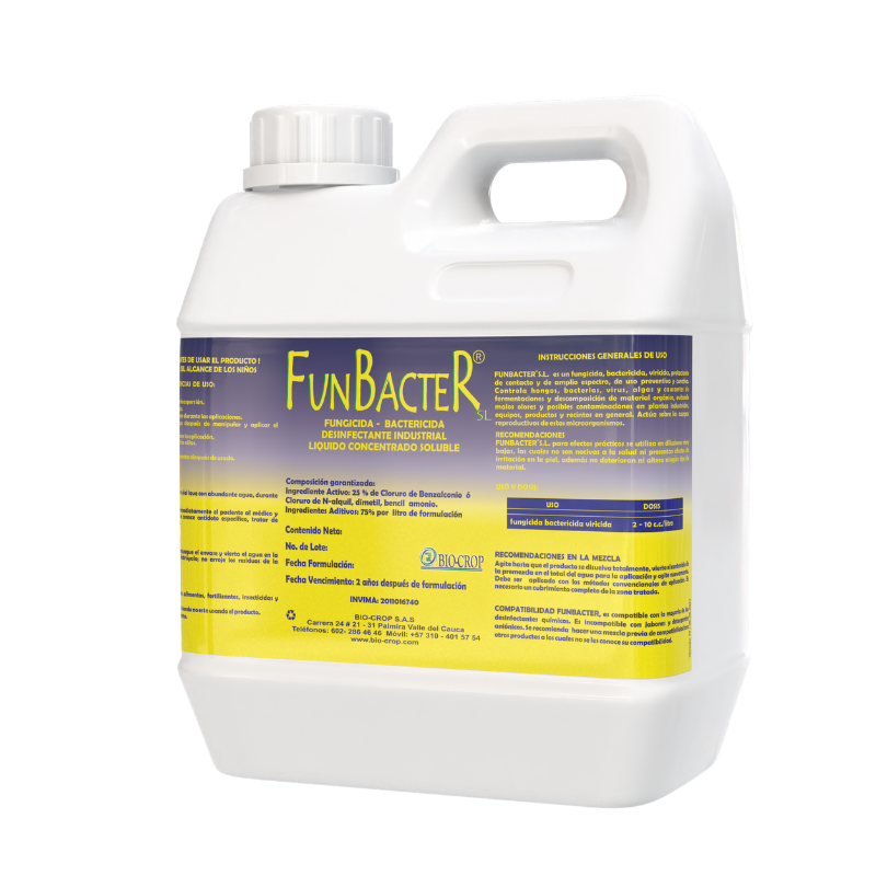 Fungicida, bactericida, viricida, protectante de contacto y de amplio espectro, de uso preventivo y curativo. Es un producto a base de N- ALQUIL, DIMETIL BENCIL AMONIO. Sales de Amonio Cuaternario, específicamente diseñado para el control de bacterias, hongos, algas y algunos virus sensibles al ingrediente activo.