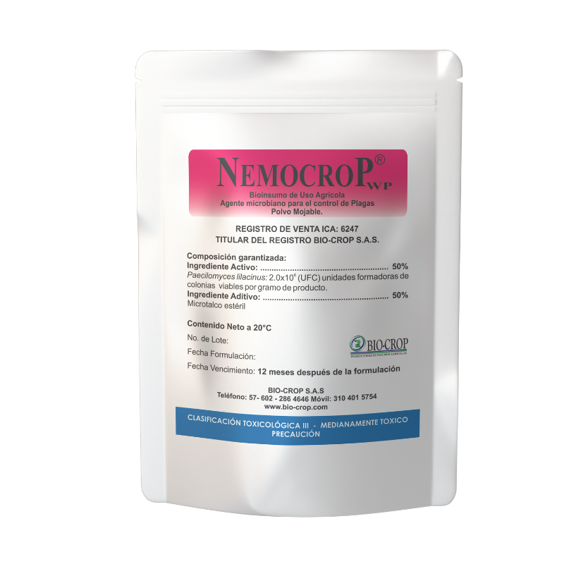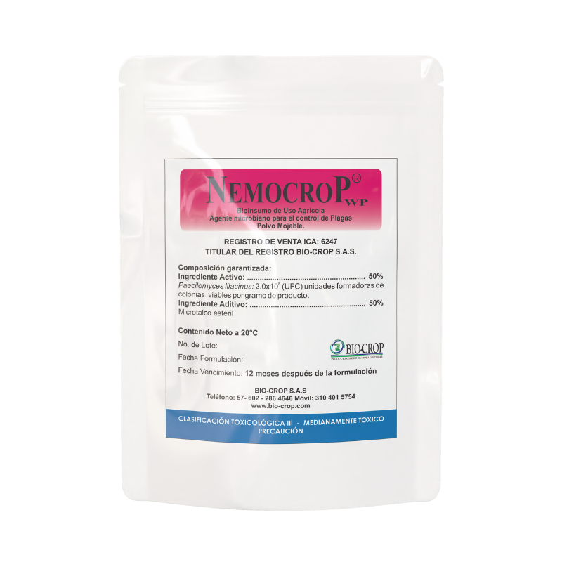 Es un nematicida biológico producido con una cepa patógena natural y selectiva de Paecilomyces lilacinus. Microorganismo de comprobada acción sobre huevos, estados juveniles y adultos de diferentes géneros de nematodos.