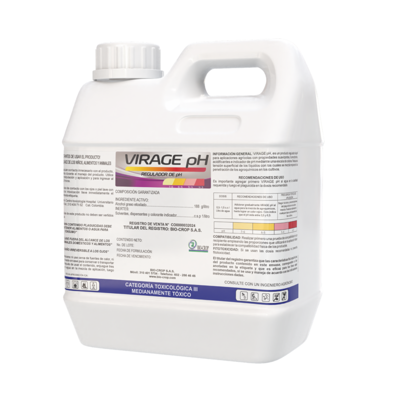 Conserva la estabilidad del pH hasta terminar la aplicación, dispone de indicadores de pH que cambian la coloración del agua lo cual evidencia un índice de efectividad en la función acidificante del producto. El indicador actúa como factor de seguridad para evitar sobredosificaciones, además determina el punto adecuado de acidez requerido por el agroquímico a aplicar.